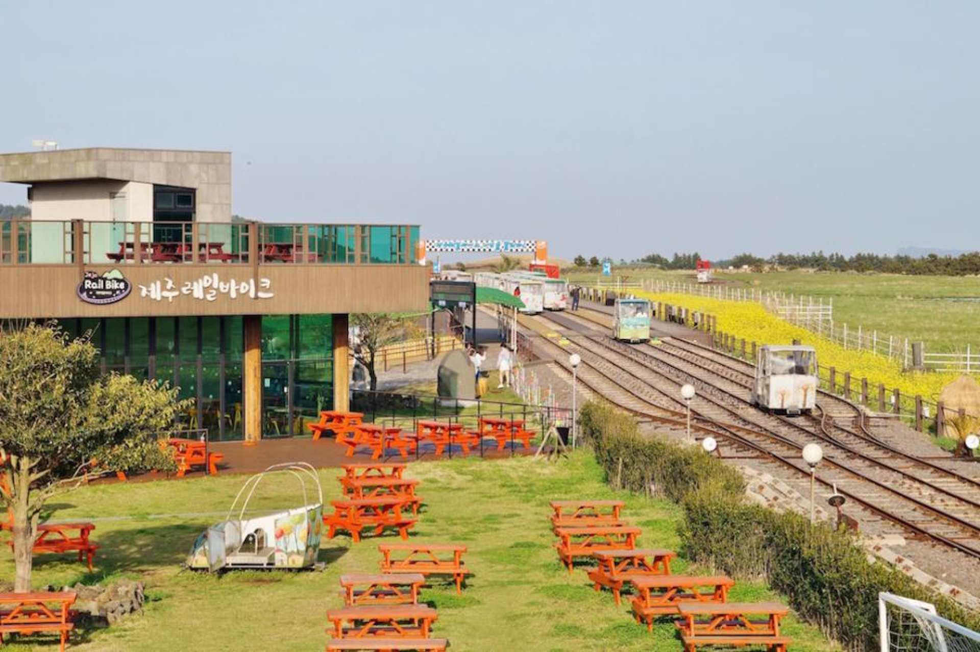【浪漫鐵道自行車】濟州鐵路公園是濟州島唯一一座體驗型遊樂設施,這兒的鐵路也是韓國國內唯一一座雙軌循環鐵路。它擁有120台不同主題的軌道自行車。你可以邊「駕駛」鐵路自行車,邊欣賞龍臥岳和月朗峰的自然風光。是適合家庭出遊的好去處。