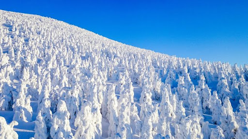 藏王「樹冰」,是日本山形縣藏王冰原上冬季最特殊的自然奇景,大約從每年的11月底到12月初開始形成,在此時期雲粒霧冰隨著冬期東北季節風被帶來,逐漸在針葉樹上著冰雪,1、2月期間,藏王冰原翠綠的蒼松便完全為白雪包覆,或如人形、或形似野獸、或狀若土地公,形狀千奇百怪,不一而足,而且僅在冬季出現,也難怪日本民間要稱它是「雪怪」