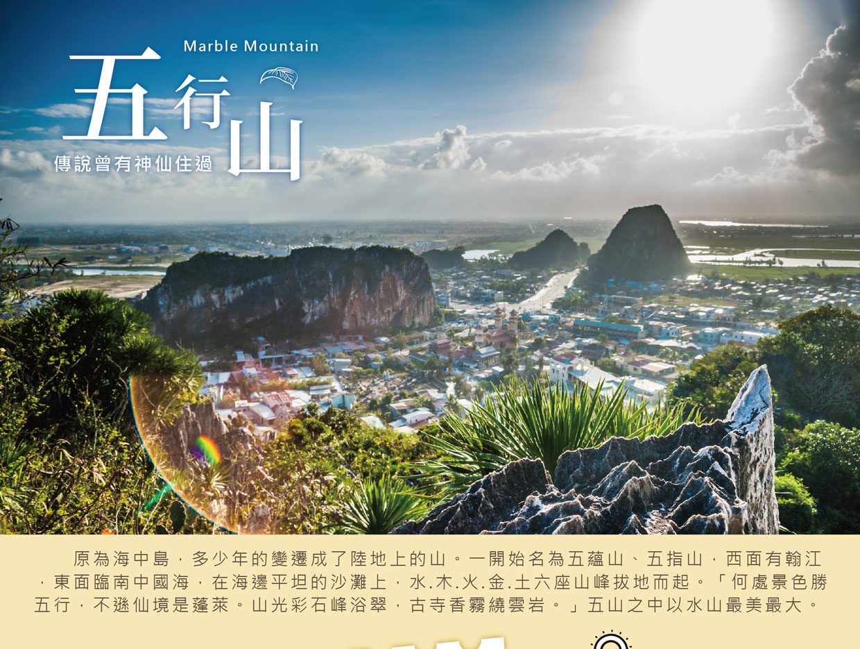 位於峴港近郊的五行山,由五座石灰岩山峰組成,分別象徵金、木、水、火、土五行。山中遍布佛寺、洞窟與石雕工坊,登上山頂可俯瞰峴港市區與南中國海的壯麗景色。這裡既是宗教聖地,也是自然與人文交融的旅遊勝地。