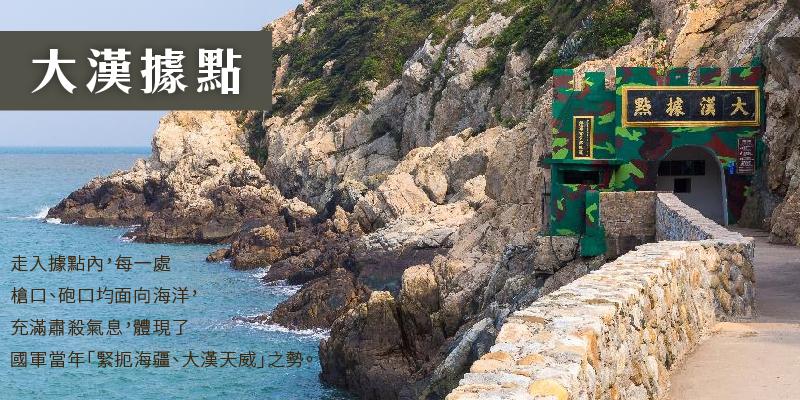 ◆大漢據點:位於南竿南方的鐵板海岸線上,與莒光島、33、46等據點控鎖著鐵板及梅石澳,形成嚴密封鎖網,控制莒光方向水道,戰略地位相當重要。隨著兩岸情勢和緩,因具有觀光發展的價值,國軍便將大漢據點移交給馬祖國家風景區管理處,民國95年整修完成。走入據點內,每一處槍口、砲口均面向海洋,充滿肅殺氣息,體現了國軍當年「緊扼海疆、大漢天威」之勢。遊客可從聯保廠旁步道進入,繞過據點上方,天氣好時,可以清楚的看見莒光的輪廓。