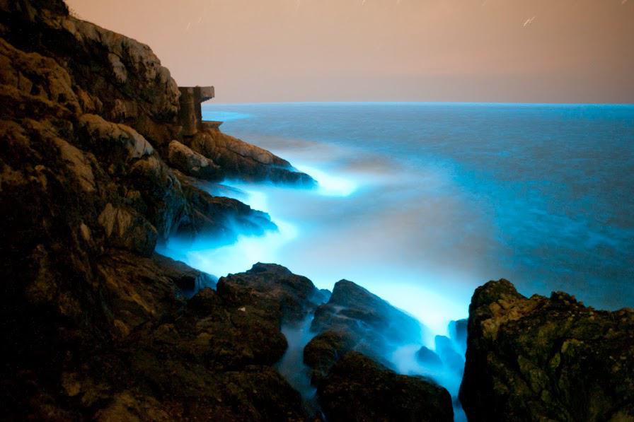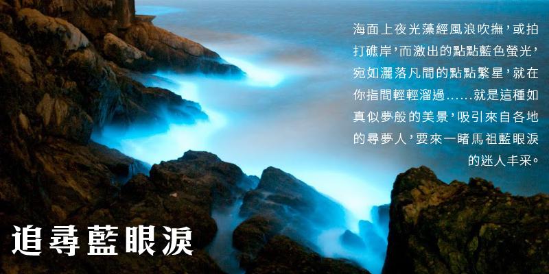 ◆追尋藍眼淚:藍眼淚形成原因眾說紛紜,有的來自渦鞭毛藻或夜光藻,介形蟲據悉是因為吃了夜光藻,所以才發光。馬祖藍眼淚是夜光藻群聚於馬祖岸邊,形成夜晚發光的現象。海面上夜光藻經風浪吹撫,或拍打礁岸,而激出的點點藍色螢光,有時候,綻放整片夢幻藍光,有時候,隨著水波漣漪,忽隱忽現,如少女般嬌羞地與到訪的尋夢人短暫相遇,有時候,將手伸進海水中輕輕撥弄,竟會泛起上千個藍色光點,宛如灑落凡間的點點繁星,就在你指間輕輕溜過……就是這種如真似夢般的美景,吸引來自各地的尋夢人,要來一睹馬祖藍眼淚的迷人丰采。