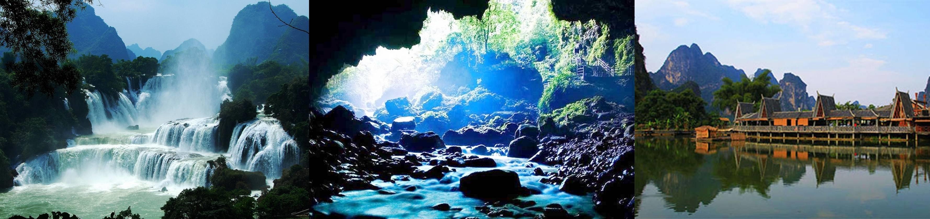 【德天瀑布】世界最美的跨國瀑布,德天瀑布沿景區步道遊覽寬一百多米,高八十多米,一波三折,數十股瀑布組成的德天瀑布,顯得氣勢磅礡,十分壯觀。瀑布上游,河水時急時緩,時合時分,迂回曲折,於參天古木間,花草掩映,百鳥低徊。瀑布雄奇瑰麗,變幻多姿,碧水長流,永不孤竭。