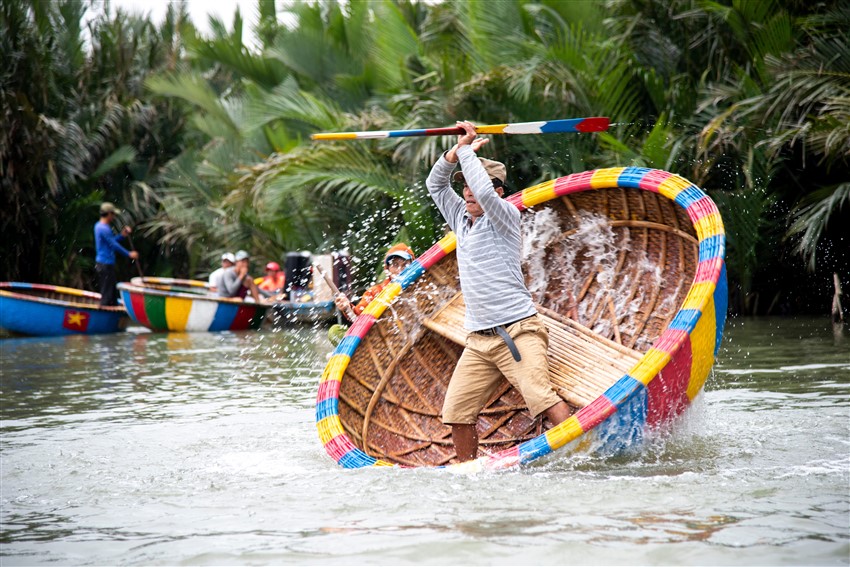 專車前往會安碼頭搭乘船隻前往對岸,迦南島位於會安對岸,於會安碼頭搭乘船隻約 30 分鐘之船程,會安秋盆河一條發源於寮國與越南邊境地帶橫穿越南的河流,河邊水鄉景色美不勝收。秋盆河會安這側商鋪林立;對岸也就是迦南島還尚未開發,是一片相對原始的自然生態風光,岸上密布著水椰林、檳榔樹,島上居民大多以捕魚及木雕維生。就讓我們體驗搭乘傳統竹桶船,穿越原始自然生態風光,及體驗樂釣螃蟹趣。越南最大型表演-會安印象秀(水舞普通席):被譽為迷你版的會安,為旅客提供了完整的懷安體驗——美麗的建築、有趣的民間遊戲、著名的河內斗笠美食和迷人的表演。
