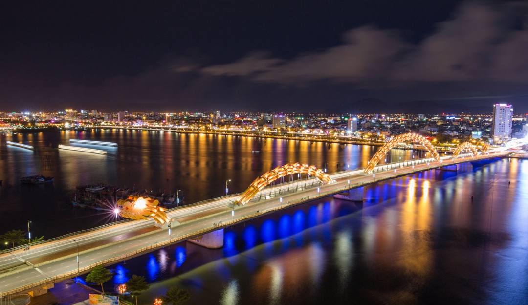 【韓江夜遊看峴港地標龍橋夜景】遊韓江,峴港市景盡收眼底,其中峴港第一地標龍橋,長長龍身橫掛韓江上,吉祥寓意滿。