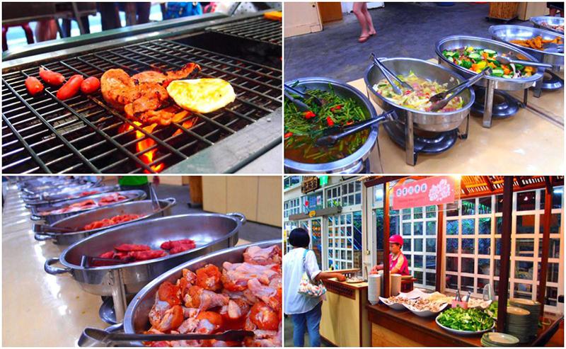農村BBQ烤肉活動是採DIY的方式,無限量的提供各種肉品食材讓客人自行選擇喜歡的肉品來烤肉。食材除了肉品外,也還有各種丸子、甜不辣、青菜等可以烤,且工作人員會協助幫忙把碳火都升好,所以客人來只要悠閒的烤肉即可。不只是烤肉,在餐廳內部也準備有各種的熟食,像是熱炒類的台菜,另外還有水果、飲料等,也全部都是吃到飽的。