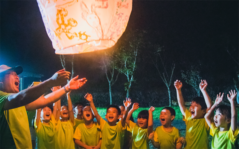 看著天燈慢慢的飛上天空,寫在天燈上的願望也跟著實現,這個對小朋友來說也是一個很難得的體驗。